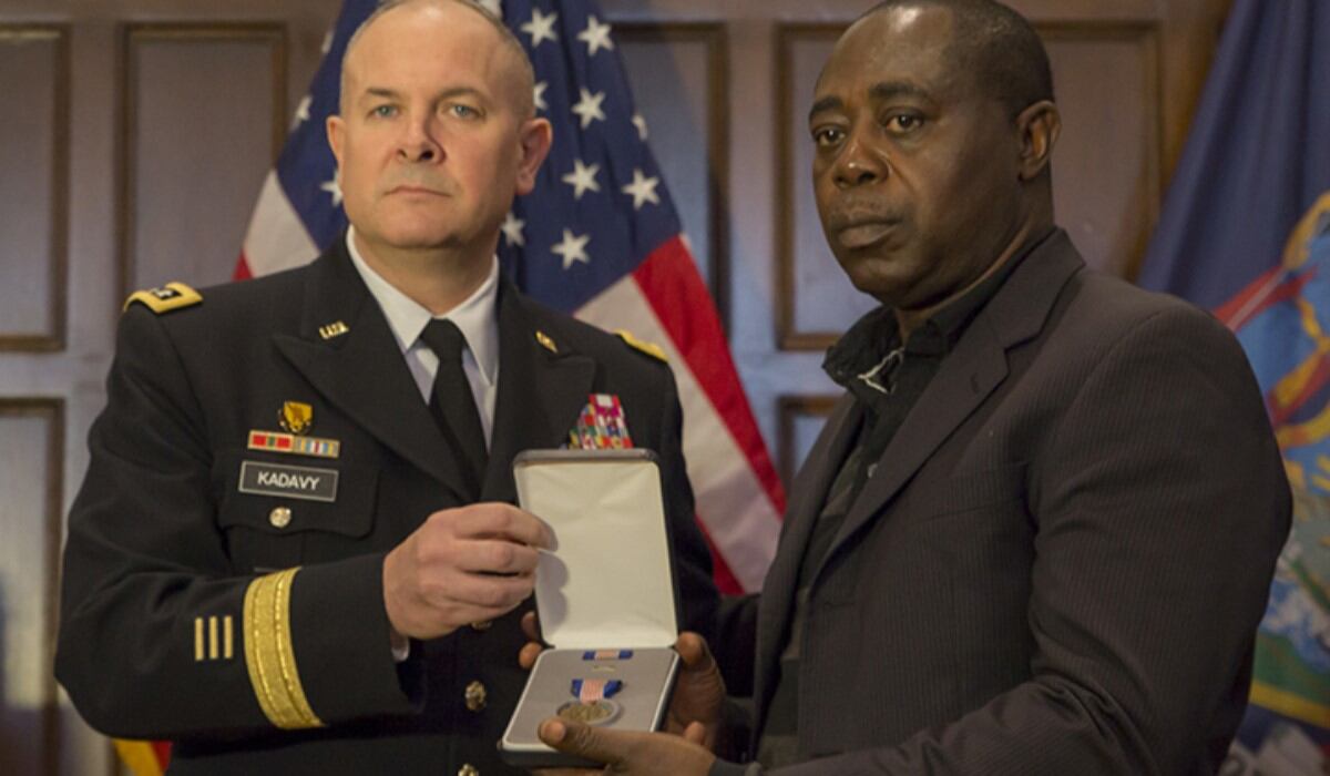 Lt. Gen. Timothy Kadavy, director of the Army National Guard, presented the Army's Soldier's Medal to Kwabena Mensah, the soldier’s father, according to an Army press release.