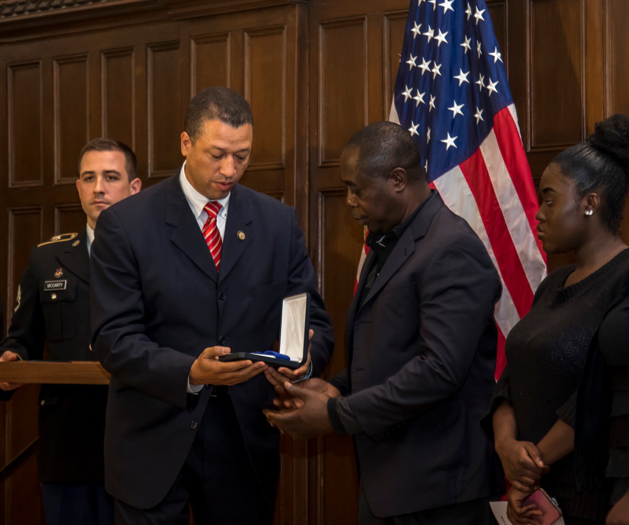 The New York State Medal for Valor was also presented to the Mensah family by Richard White, New York State’s deputy secretary for public safety, on behalf of Gov. Andrew Cuomo.