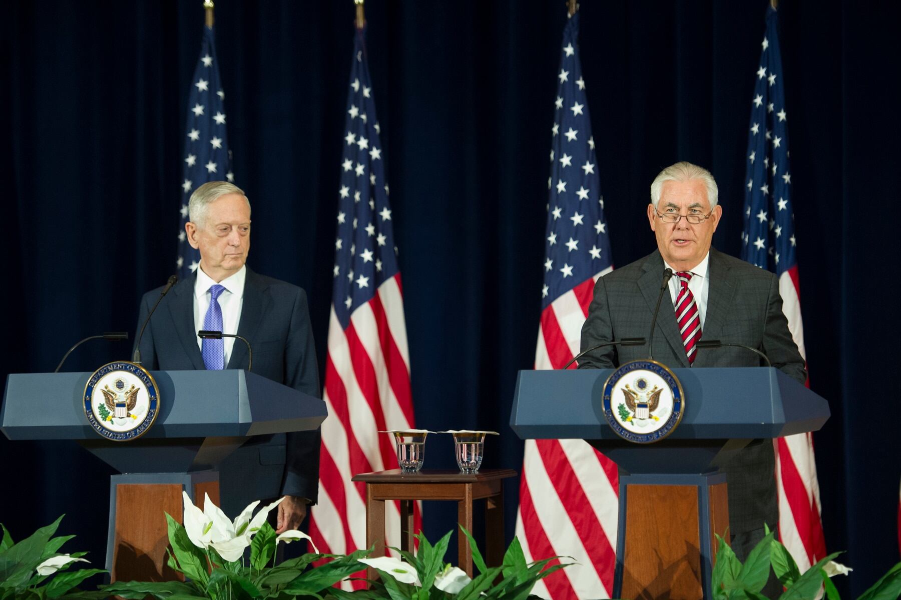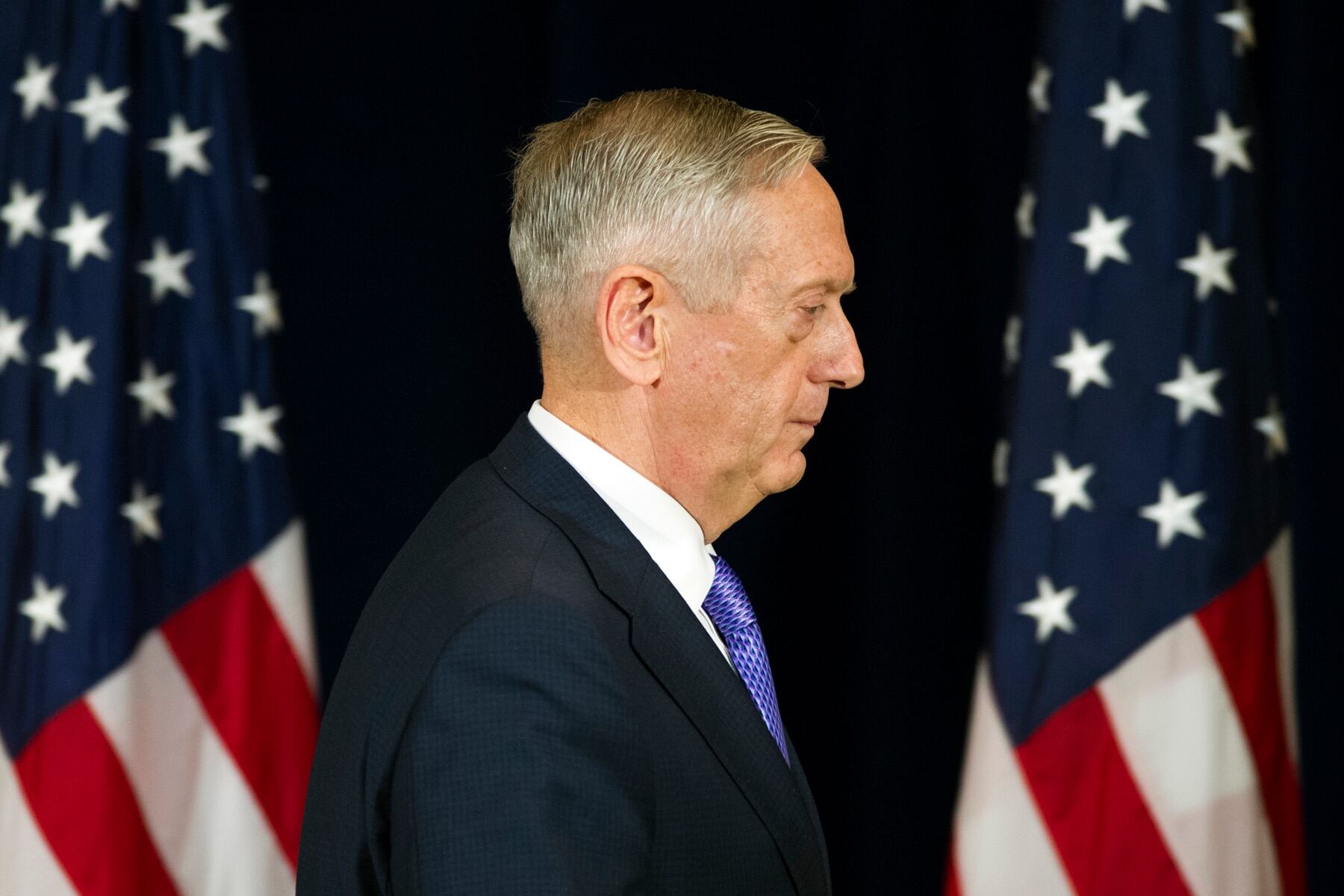 Secretary of Defense Jim Mattis walks from the podium after a news conference with Secretary of State Rex Tillerson, following a Diplomatic and Security Dialogue Meeting with a Chinese delegation including State Counselor Yang Jiechi and military Chief of Joint Staff Fang Fenghui, at the State Department in Washington, Wednesday, June 21, 2017.