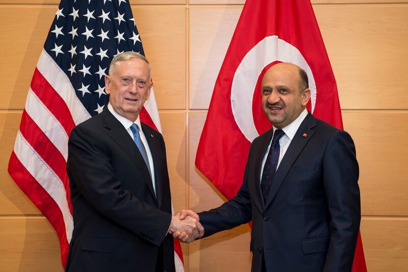 Turkish Defense Ministry officials said in a statement that Mattis also reassured Defense Minister Fikri Isik that the United States would regularly provide Turkey with a list of arms provided to the fighters while U.S. military advisers on the field would ensure that the arms don't go outside of the Syria battle zones.