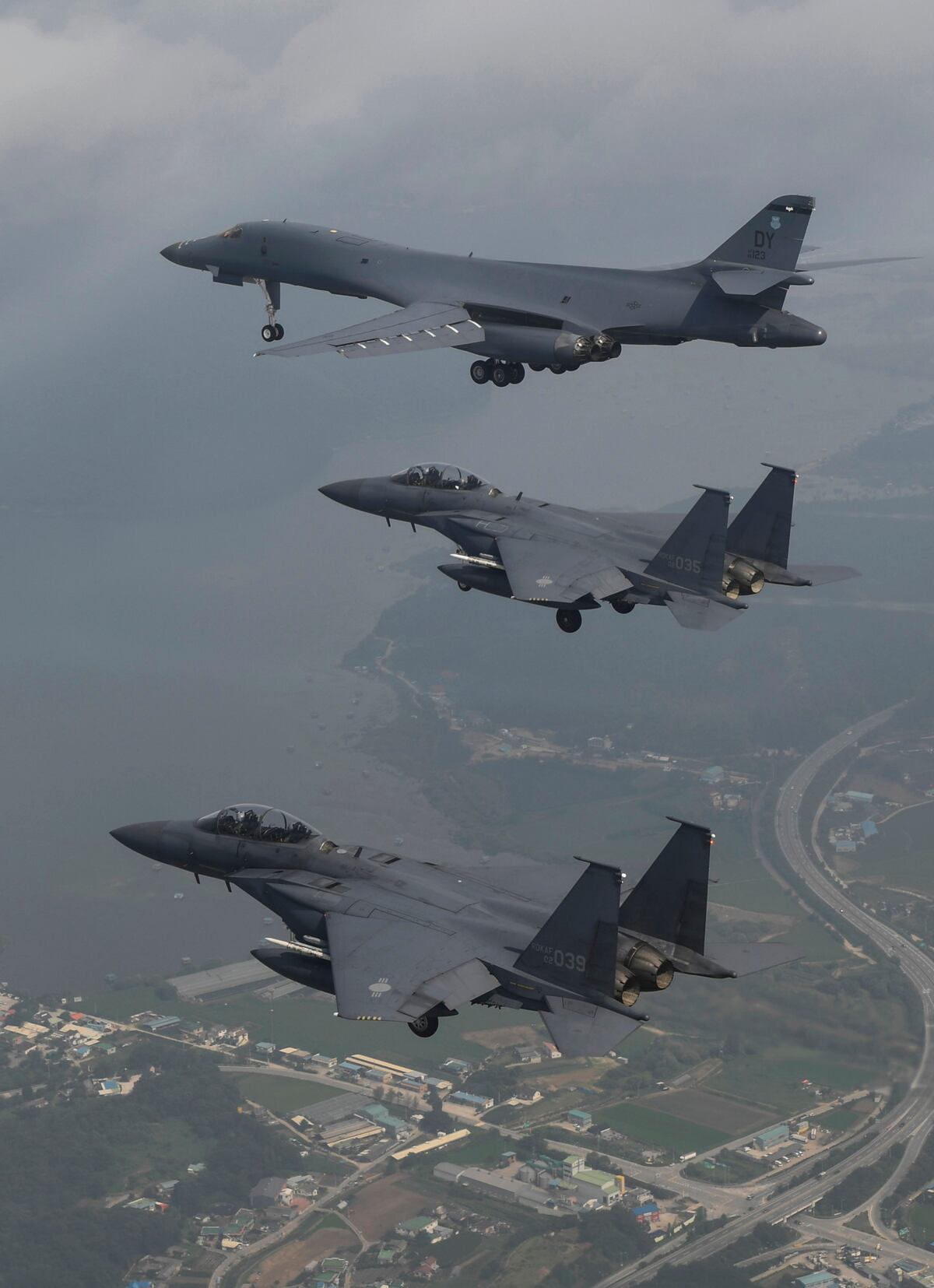 The B-1 bombers were escorted by South Korean fighter jets as they performed a low-pass over an air base near the South Korean capital of Seoul before returning to Andersen Air Force Base in Guam, the U.S. Pacific Air Forces said in a statement.