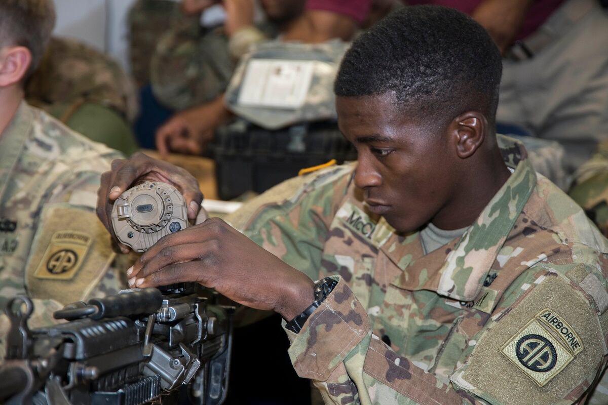 Paratroopers with the 82nd Airborne Division conducted static line jumps with the Family of Weapon Sights-Individual program devices on their carbines, machine guns and sniper rifles. The jumps helped soldiers give feedback on the size, weight and configuration of the new items.