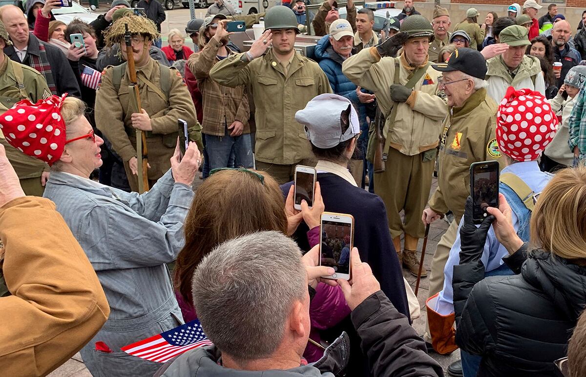 This time it was ceremony that found him, at 95, once again rolling in an armored vehicle. While perhaps a couple hundred people, from toddlers to gray-haired veterans, waved miniature flags and cheered, Smoyer descended from the tank. Aided by a cane, he made his way from the street through a throng of well-wishers and World War II-era uniformed soldiers, who snapped to attention and saluted as he passed.