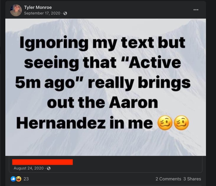 Monroe seemingly didn’t meet the bar of “foreseeable serious misconduct” before he assaulted the third woman, despite publicly sharing a joke on his Facebook profile about how “ignoring [his] text but seeing that [someone is online on social media] really brings out the Aaron Hernandez in [him].”