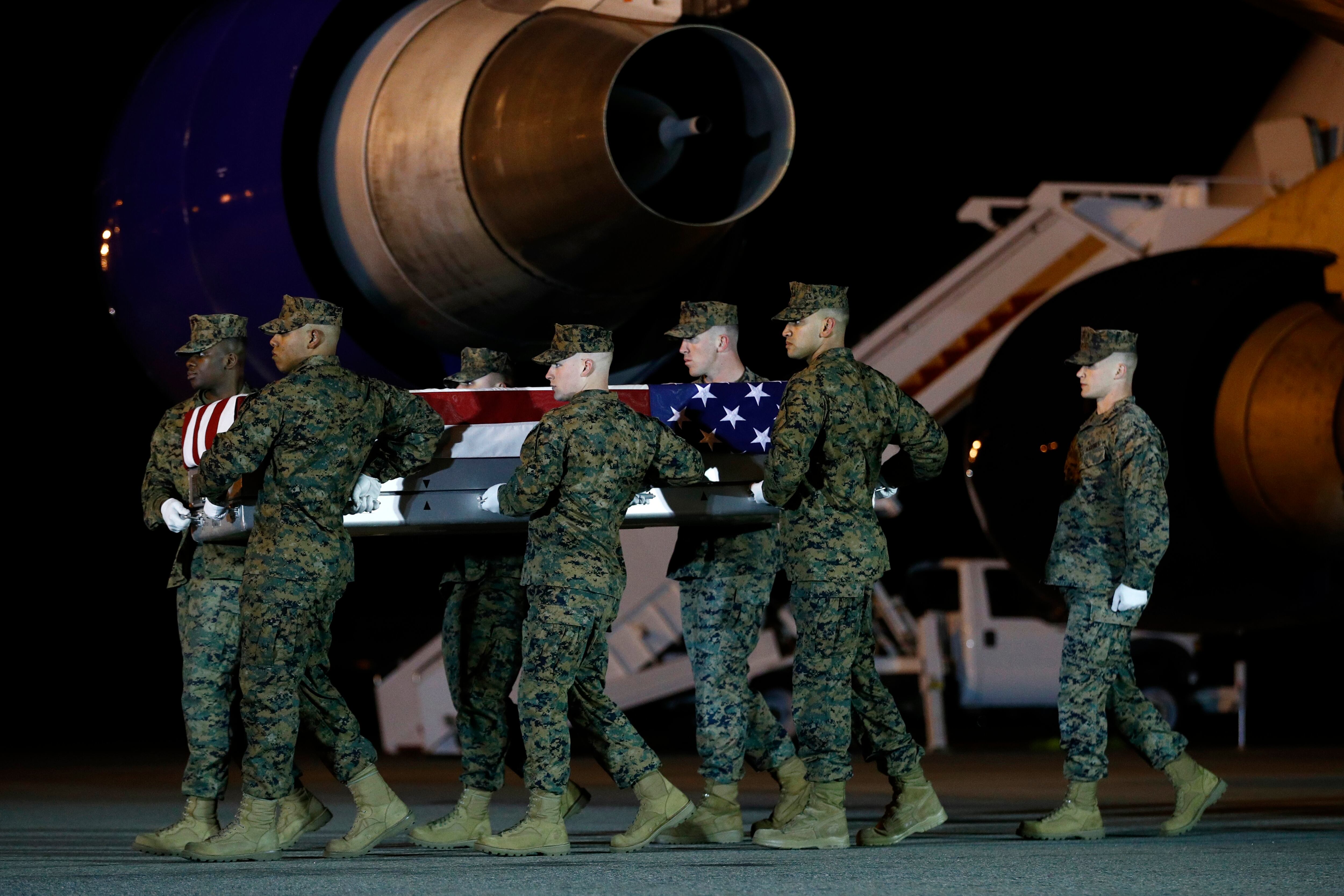Relatives of the deceased Marines were invited to witness what the military calls a dignified transfer in which the cases containing the remains are transferred to a vehicle from the aircraft that ferried them to the United States. Media access to the transfer event is allowed if agreed by the family of the fallen service member, under a policy initiated in March 2009.