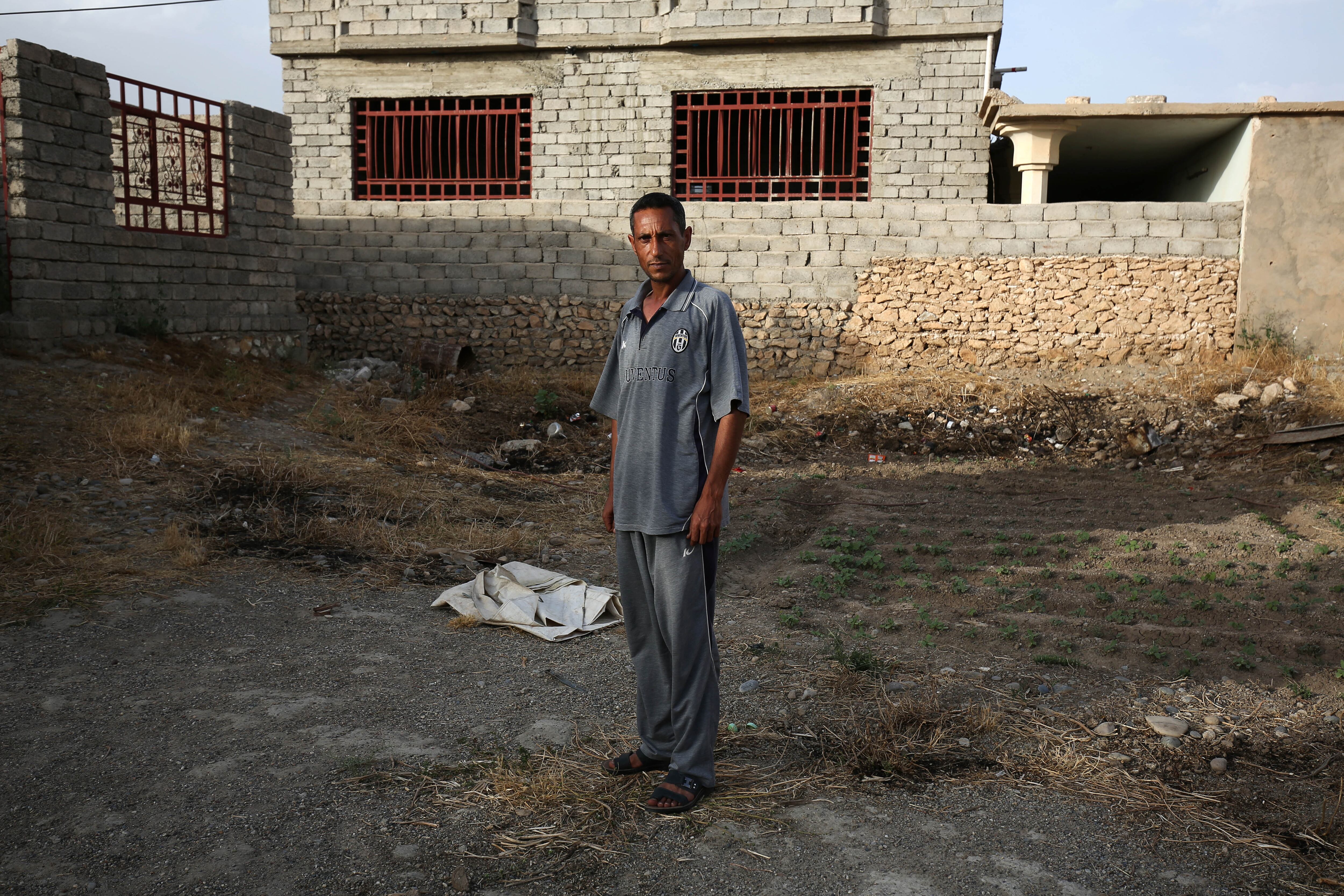 In this May 26, 2015, photo, Bilal Abdullah poses for a portrait in the village of Eski Mosul in northern Iraq, nearly a year after Islamic State militants took over the village.