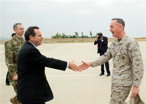 Dunford traveled to Iraq Tuesday in the last segment of a five-day trip, which also included stops in Israel and Jordan. It was his first trip to the war zone since taking the chairman's job on Oct. 1, and he spent time meeting with military commanders and leaders of the Kurdish government in northern Iraq in the morning, then went to Baghdad.