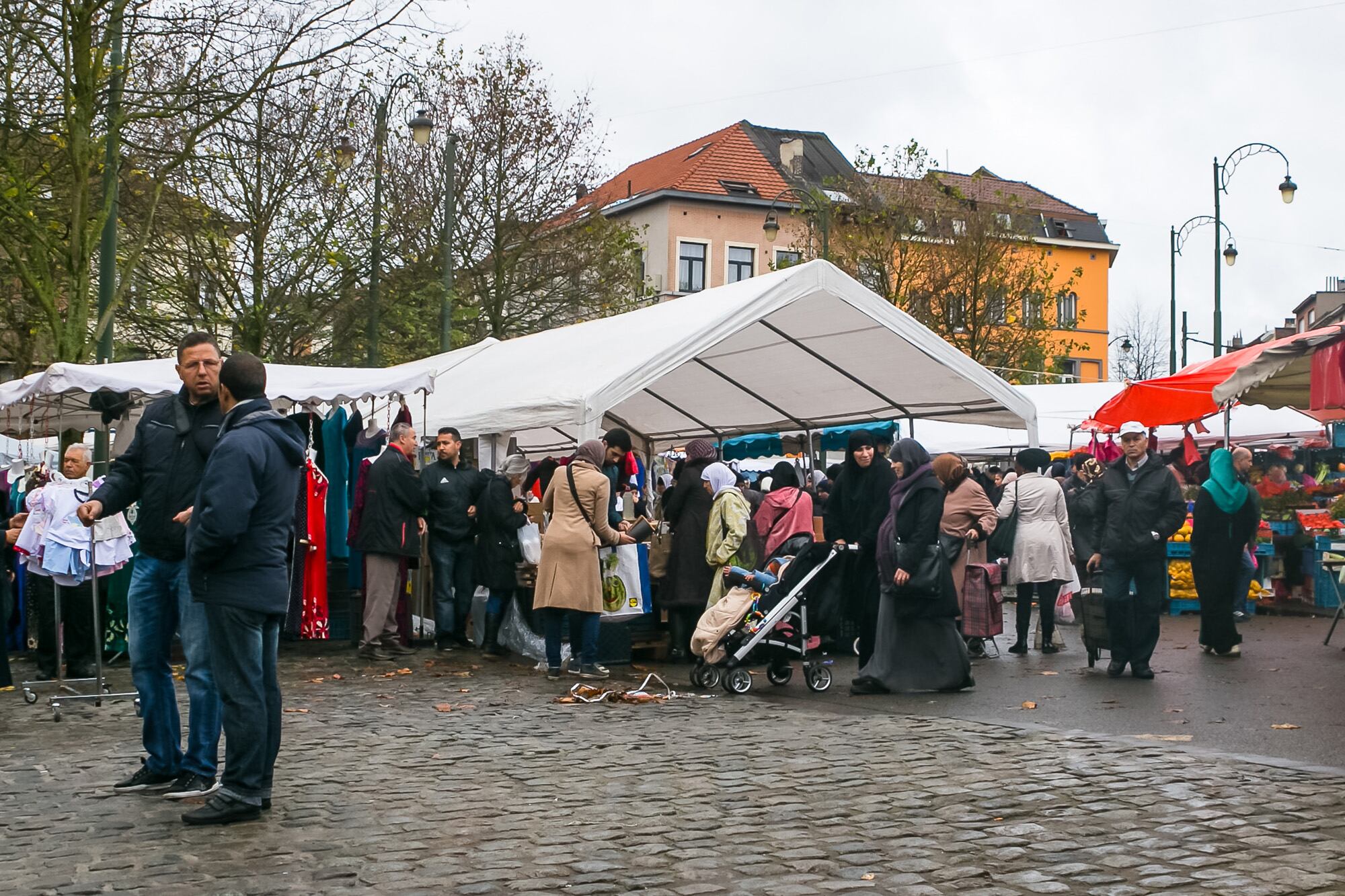 People visit the weekly market in the Molenbeek neighborhood in Brussels on Nov. 17. Belgian Foreign Minister Didier Reynders acknowledged that the Belgian authorities need "to organize more and more actions" in the Molenbeek neighborhood, which is a focal point for religious extremism and fighters going to Syria. One of two of the French men believed to have carried out the attacks lived there.