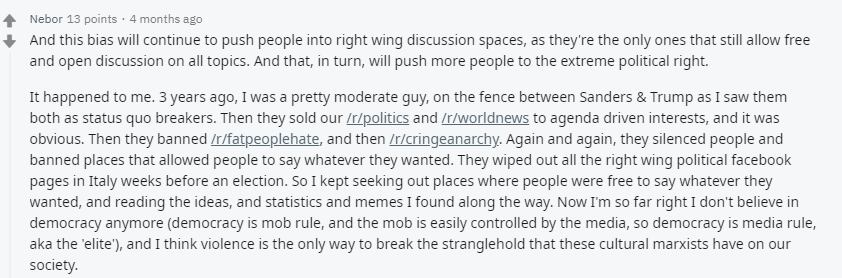 “Only around 10 [percent] of my posts are in public subreddits. You’re just getting a tiny sanitized taste,” Nebor wrote in a late September thread, after a fellow Redditor accused him of racism.