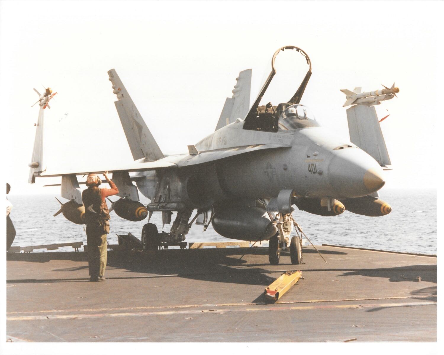 While he was deployed, in 1986, the United States launched airstrikes against Libya in retaliation for sponsorship of terrorist attacks against Americans. More than 100 U.S. Navy and Air Force planes hit five targets within the space of an hour. But it was still different from Desert Storm.