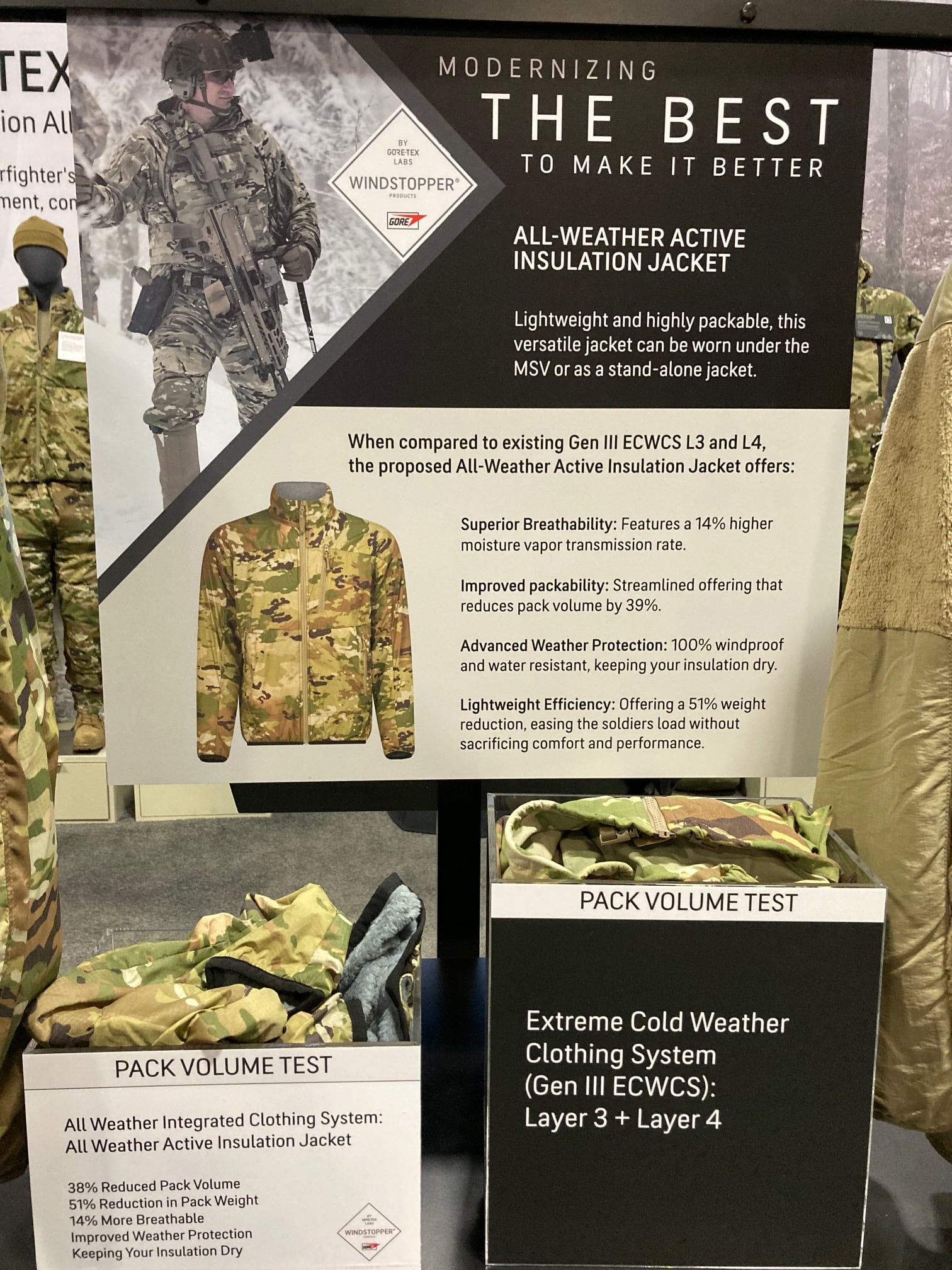 The all-weather jacket is being offered as part of Gore’s All-Weather Integrated Clothing System, a simplified 10-piece set of pants and jackets that Friedman said protects soldiers in conditions from -40 to 30 degrees Fahrenheit and could bridge the gap between existing ECWCS gear and the recently fielded Cold Temperature and Arctic Protection Systems, or CTAPS.