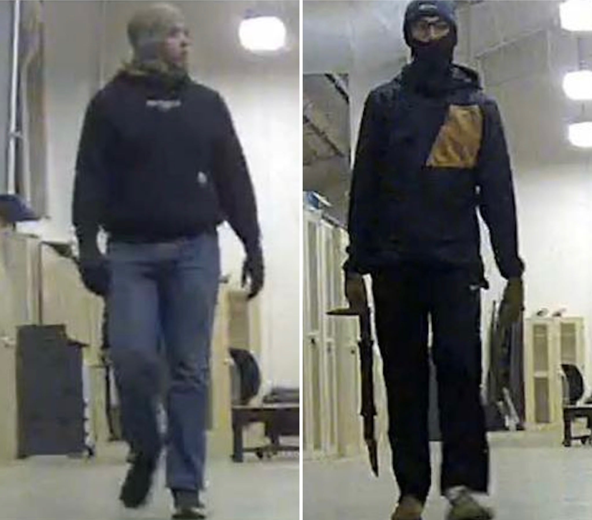 Army investigators released photos of two suspects wearing head coverings, dark sweatshirts and long pants and closed-toe shoes. They also included photos of two vehicles potentially involved in the theft: a light colored four-door sedan and a dark colored four-door truck.