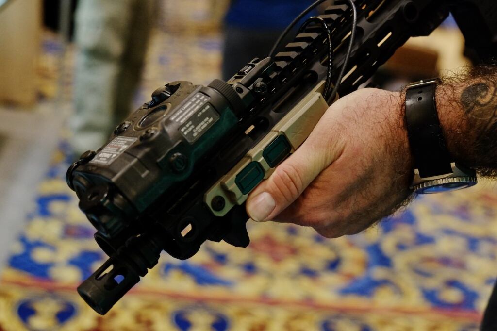 Up and coming design shop Unity Tactical had some interesting products displayed on their wall inside the TNVC booth, one of which was a unique pressure switch. Developed in partnership with TNVC, Unity's patent-pending T.A.P.S. is a rail-mounted, low-profile polymer body with two rubber buttons. What takes it to the next level:
