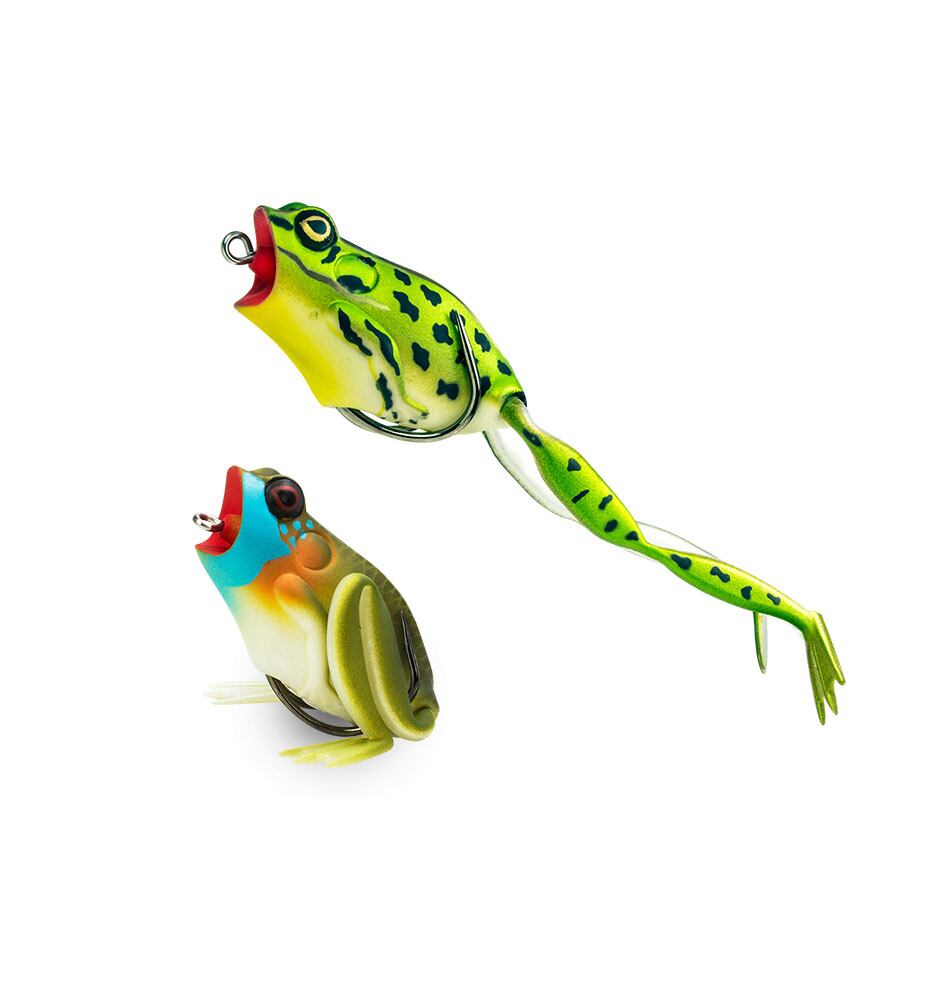 Lunkerhunt creates a hollow body product with a concave face that catches water and creates popping and spitting noises to attract fish. The lure's legs move in a realistic fashion, mimicking a swimming frog. It's designed to travel unencumbered through the weeds. At the bite, the lure's sharp upturned hooks are ready for the set. It comes in 10 different patterns available in two sizes: 1/2-ounce and 1/4-ounce. $7.99 and $6.99