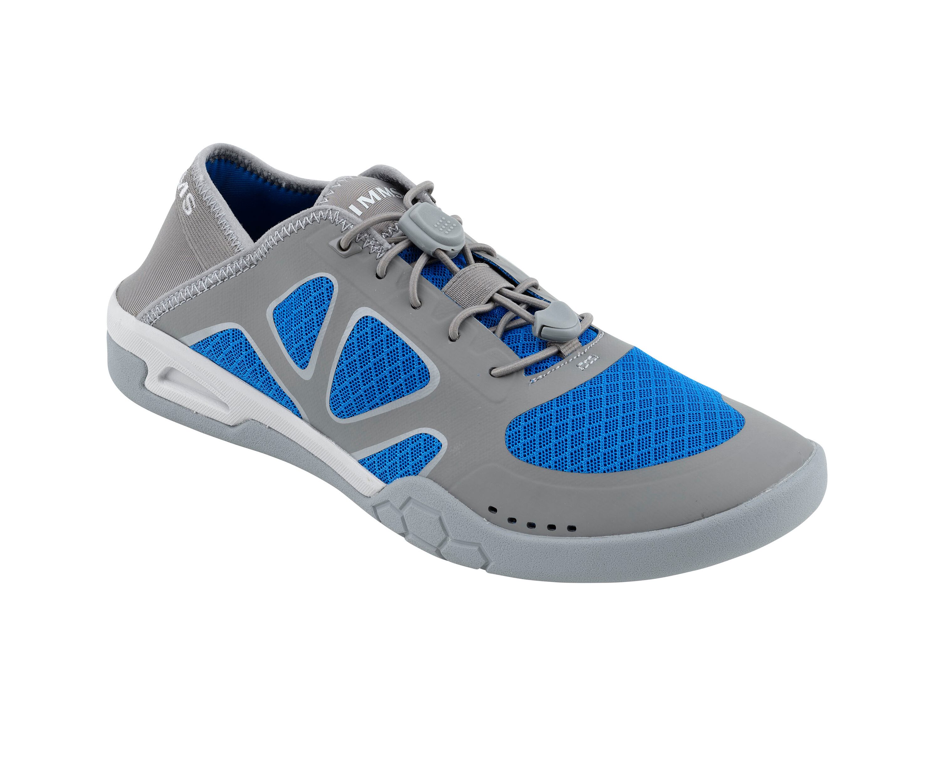 For many, quality arch support in a shoe is a must. Without it, standing all day in a boat pitching about on the water takes a toll on leg and back muscles. Simms' new shoe (available next spring) is based on its "Right Angle Footbed" technology. The shoe has a seamless TPU (thermoplastic polyurethane) welded and quick-dry mesh upper with tuck-away, bungie lacing closures, while thin-slit, non-marking outsoles aid traction. A pair of size 11s weighs 20.8 ounces. $99