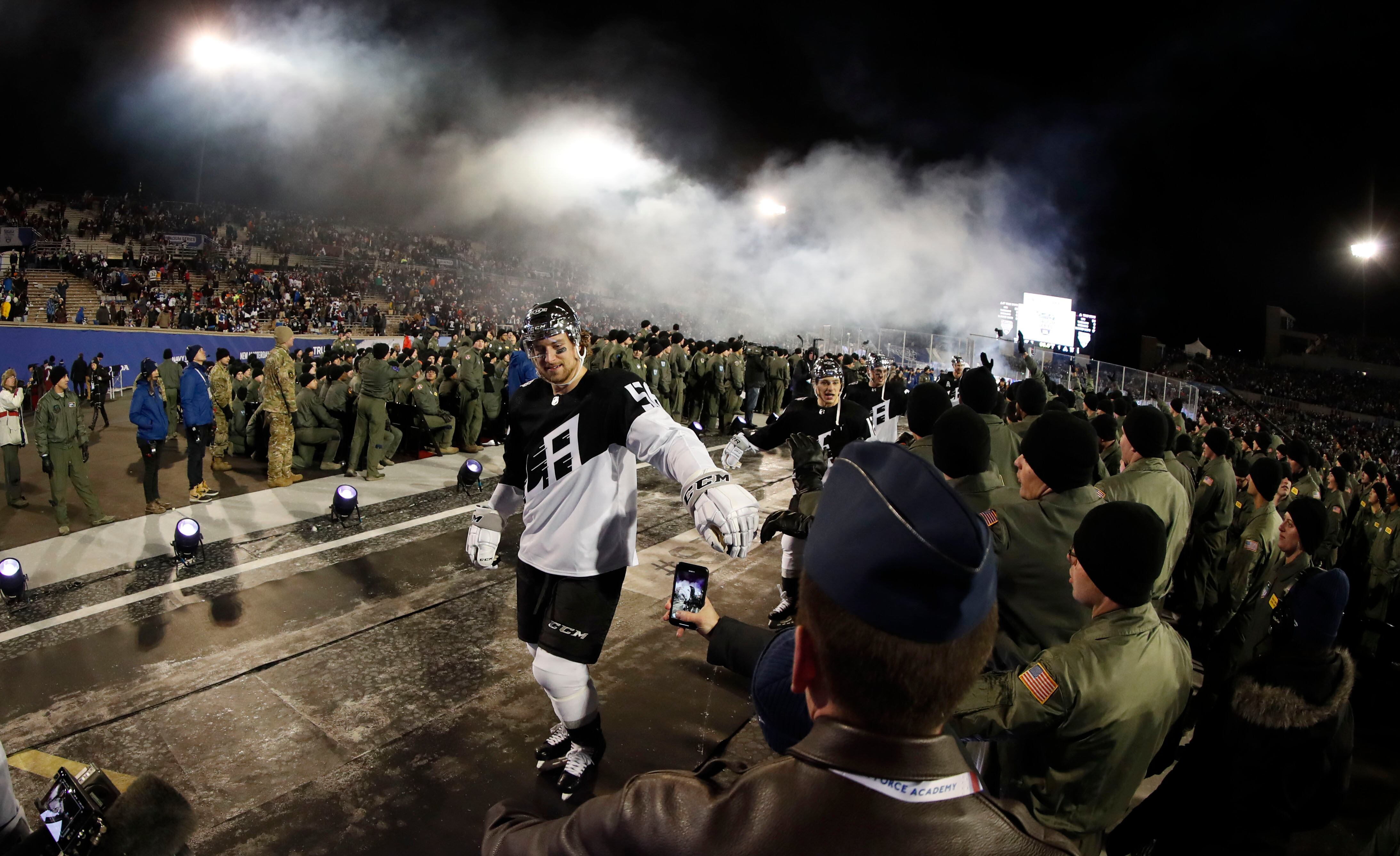 AIR FORCE ACADEMY, Colo. — The National Hockey League transformed the U.S. Air Force Academy’s Falcon Stadium Saturday night into a winter wonderland, sparing no expense in a clash between the Colorado Avalanche and the Los Angeles Kings in the 2020 Navy Federal Credit Union NHL Stadium Series.