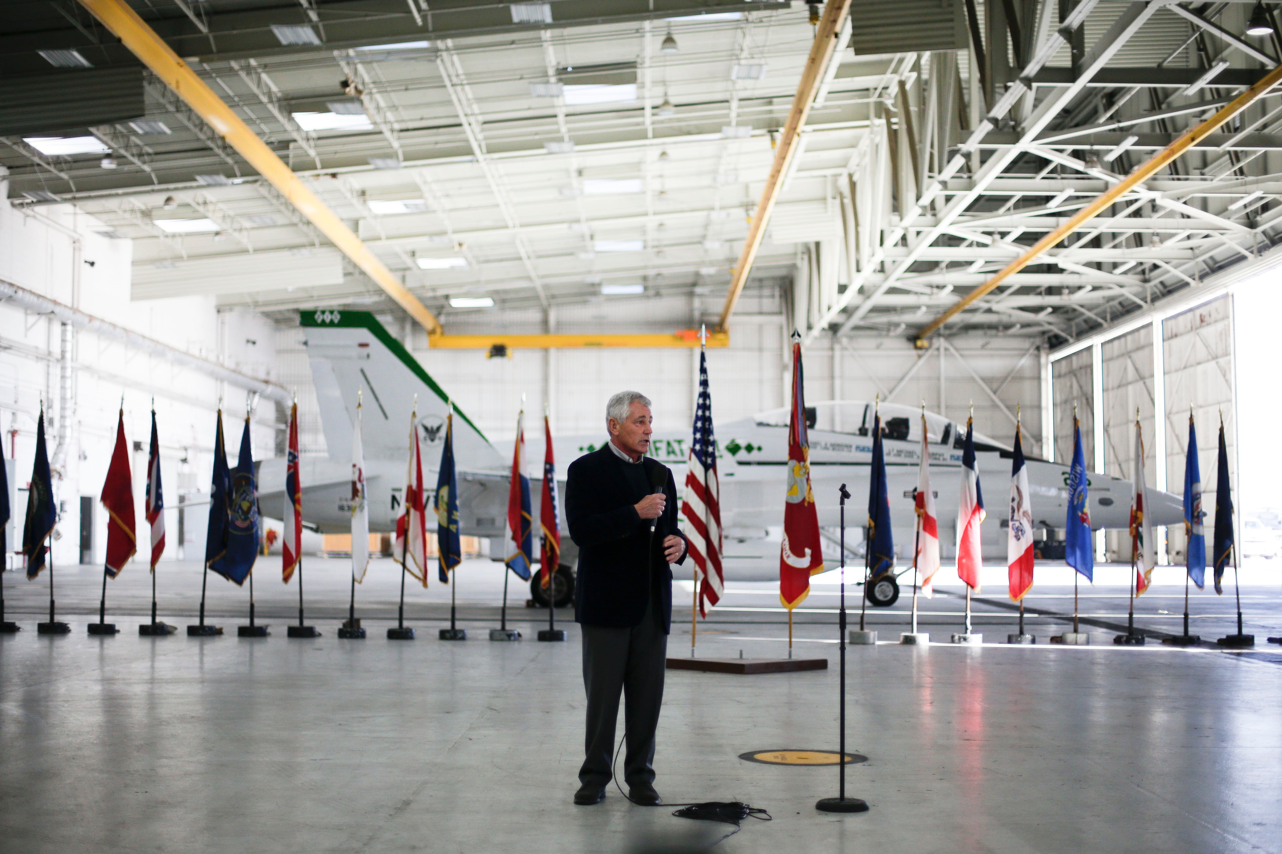 Hagel is making a three-day trip across the country to speak directly with soldiers, sailors, airmen and Marines. After announcing his resignation in December, he is expected to leave office in February and said he wanted to make some final visits to thank the troops for their service.