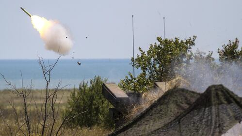 An AN/TWQ-1 Avenger air defense system fires a missile over the Black Sea at Capu Midia Training Area in Romania, July 19, 2017. (Pfc. Nicholas Vidro/Army)