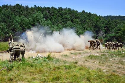 U.S. paratroopers conduct urban breach training as part of Exercise Rock Knight at Pocek Range in Postonja, Slovenia, July 20, 2017. (Paolo Bovo/Army)