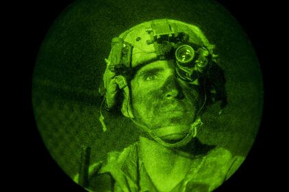 A soldier watches as troops move to cover during Panther Storm at Fort Bragg, North Carolina, Aug. 2, 2017. The exercise tests the division's ability to rapidly deploy its global response force anywhere in the world within a short notice. (Staff Sgt. Andrew Lee/Air Force)