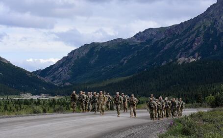 U.S. Soldiers take part in Operation Denali Conquest, a 26.2-mile foot march along the park road in Denali National Park, Alaska, July 26, 2017. (John Pennell/Army)