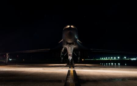 A U.S. Air Force B-1B Lancer prepares to take off for a 10-hour mission from Andersen Air Force Base, Guam, into Japanese airspace and over the Korean Peninsula, July 30, 2017. (Tech. Sgt. Richard P. Ebensberger/Air Force)