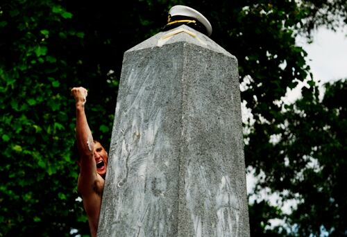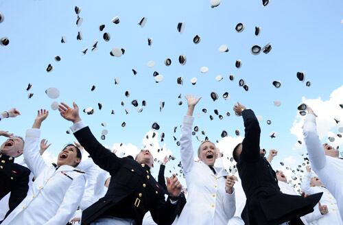 Air Force cadets march during noon meal formation Oct. 9, 2020, on the Academy's Terrazzo at the U.S. Air Force Academy in Colorado Springs, Colo. (Trevor Cokley/Air Force)