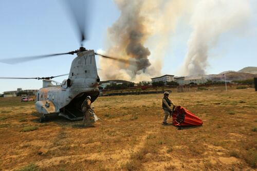 Marines with 3rd Force Reconnaissance Company, 4th Marine Division prepare to static line jump out of a CH-53 Super Stallion during an airborne operations event at Camp Shelby, Miss., Oct. 6, 2020. (Sgt. Conner Downey/Marine Corps)