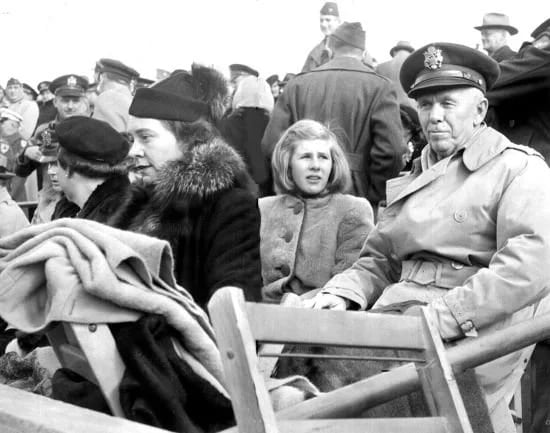 Not to miss out on the spectacle was that of Army Chief of Staff Gen. George C. Marshall, Gen. Hap Arnold, commander of the Army Air Forces, and Adm. Ernest King, chief of naval operations.