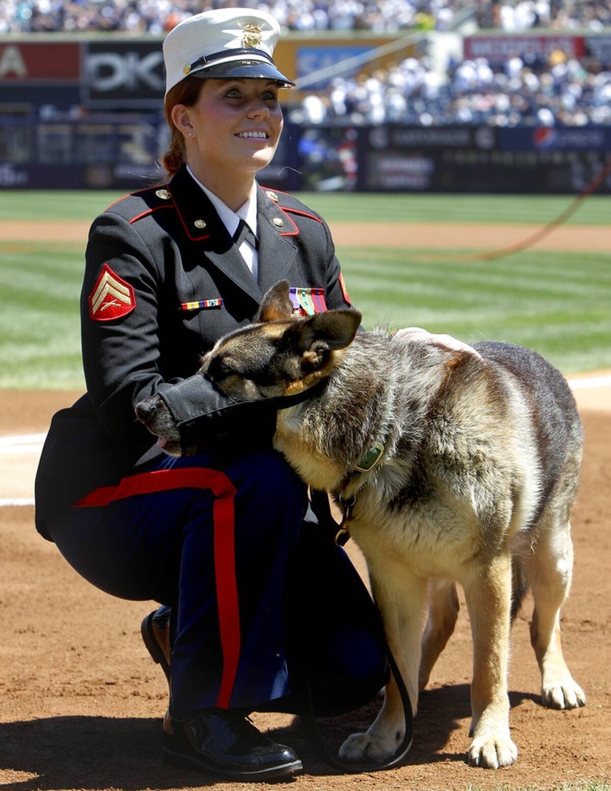 Cpl. Megan Leavey and a German shepherd named Sgt. Rex were wounded by a roadside bomb in Iraq in 2006.